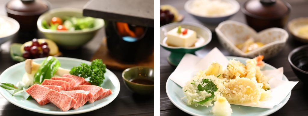 『甲州牛の溶岩焼き定食』 『天ぷら定食』